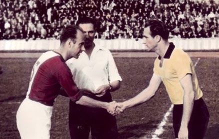 Pesti György, a munkácsi Piola csapatkapitányként kezet fog az ellenféllel