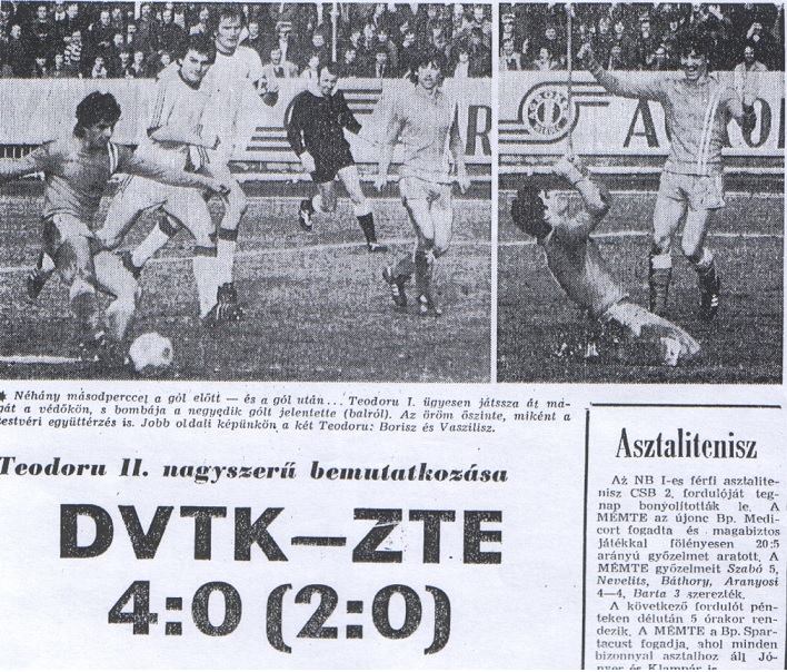 A Teodoru testvérpár egyik fele, 1978-tól hat éven át erősítette a DVTK csapatát, és tagja volt az 1979-ben bajnoki bronzérmes, illetve 1980-ban kupagyőztes csapatnak. A Zalaegerszeg elleni 4-0-s győzelem napján lépett először pályára 1979 tavaszán, a harmadik gól pedig az ő nevéhez fűződött, 20 perccel utána pedig testvére, Borisz is hálót talált. Érdekesség, hogy a ZTE ellen fél évvel később is betalált az 1979/1980-as idény nyitónapján, összesen kilenc alkalommal volt eredményes a DVTK színeiben.