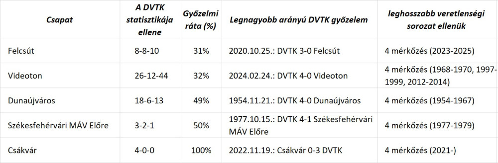 Addig is, vegyük sorba, hogy hogyan teljesített a DVTK a megye többi klubja ellen.