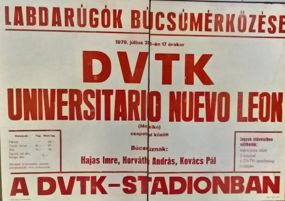 Horváth András - és társai - tiszteletére búcsúmérkőzést is szervezett a DVTK, Hajas Imre és Kovács Pál volt Horváth mellett a két ünnepelt. Érdekesség, hogy Hajas Imre nem ért haza külföldi útjáról, ezért nem lehetett ott a búcsúmeccsén... Az ellenfél a mexikói bajnok UNL Tigre csapata volt, akik 3-1 arányban legyőzték a piros-fehéreket az 5000 néző előtt sorra kerülő rendezvényen.