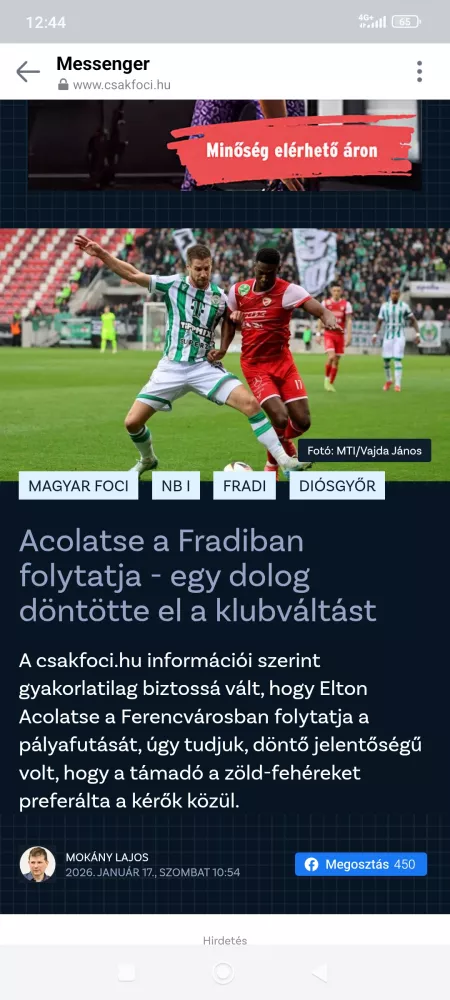 Azóta konkrét ajánlatok is érkeztek a támadóért, de ezek eddig elmaradtak attól, amennyit a diósgyőriek kapni szeretnének érte. Azóta azonban változott a helyzet. Úgy tudjuk, a héten befutott egy olyan ajánlat, amit a DVTK már elfogadhat. Feltéve, ha a játékos is a váltás mellett dönt.