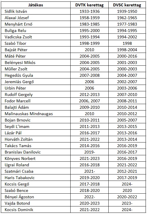 Előtte viszont tekintsük meg azon jelenlegi, és egykori DVTK-játékosokat, akik megfordultak a Cívisvárosban is.