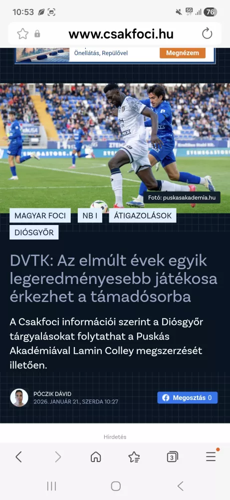 Csakfoci szerint Colley érkezhet.