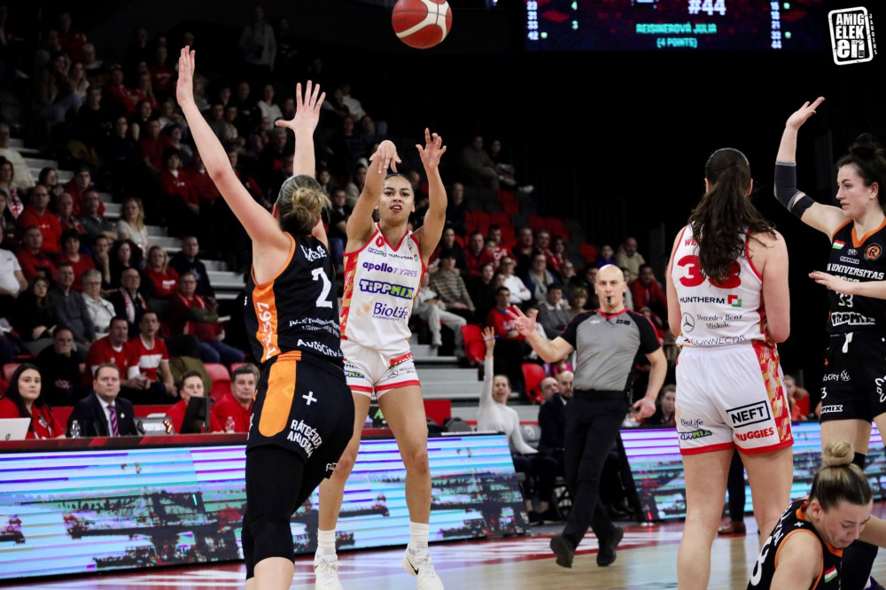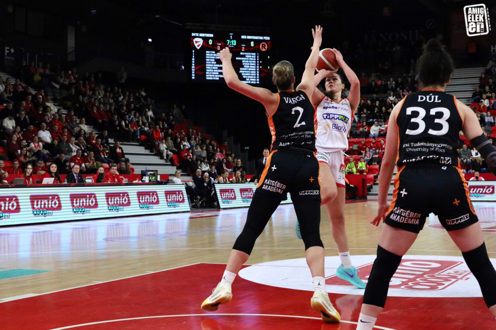 Nagyon kevés hiányzott ahhoz, hogy a diósgyőri kosaras lányok ledolgozzák a Pécsen összeszedett 16 pontos hátrányt. Toman Petra sikeres hárompontosával a 4. negyed 6. percében már 20 pont volt az előnyünk, de a vendégek nem adták fel és két hárompontossal 66-52-re zárkóztak. Ezt követően 4 perces diósgyőri kosárcsend következett, így az előnyünk a 4. negyed végére 10 pontosra zsugorodott, aminek következtében a 2. helyen zártuk az alapszakaszt.