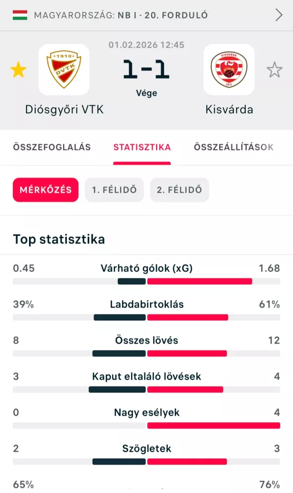 Miskolc, DVTK Stadion, 2026.02.01 12:45