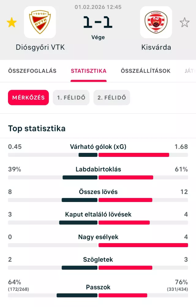 Miskolc, DVTK Stadion, 2026.02.01 12:45