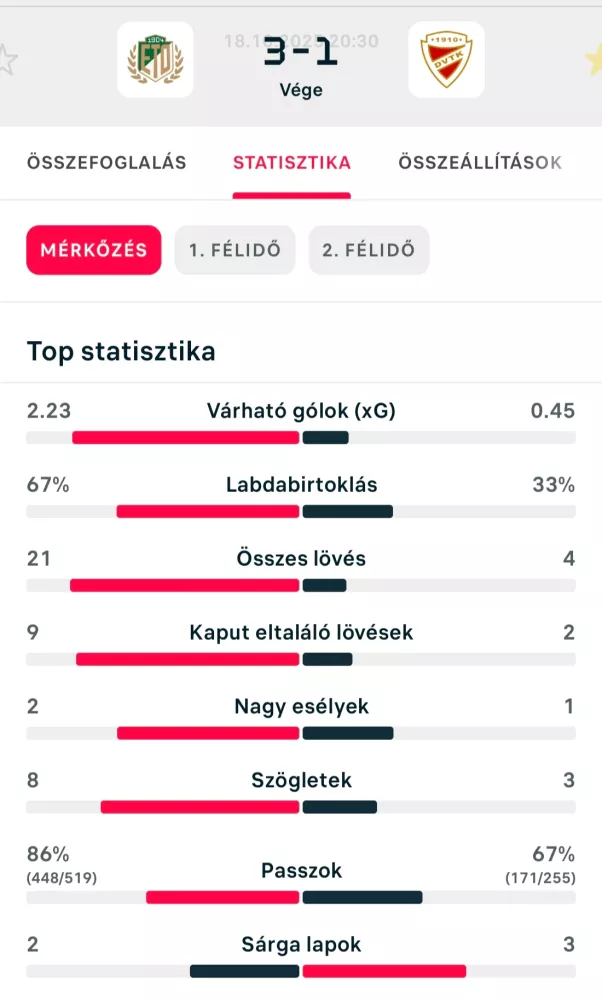 Csere: JUREK Gábor helyett Yohan CROIZET-KOLLÁR és GERA Dániel helyett SZATMÁRI Csaba a 46., MUCSÁNYI Márk helyett BÉNYEI Ágoston és SAJBÁN Máté helyett Ivan ŠAPONJIĆ az 58., SCHÖN Szabolcs helyett VINGLER László a 68., Elton ACOLATSE helyett BOKROS Szilárd a 79., BÁNÁTI Kevin helyett HUSZÁR Marcell a 81., Claudiu BUMBA helyett Nfansu NJIE és Ahmed BENBOUALI helyett Oleksandr PYSHCHUR a 89. percben.