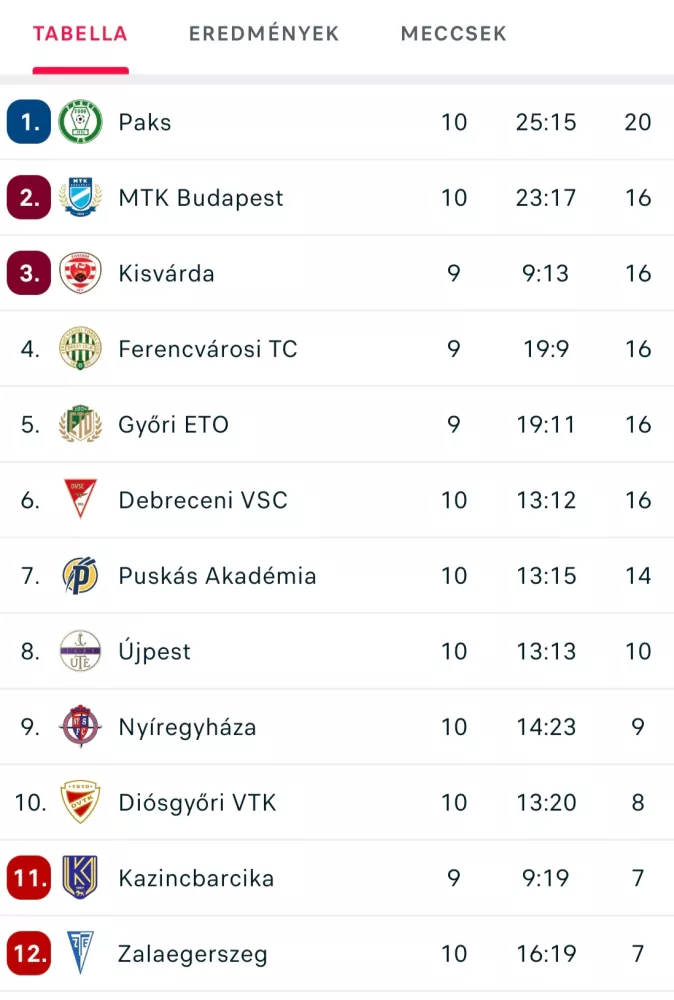 20 meccs alatt összesen nem éri el a frissen feljutó Kisvárdáét.