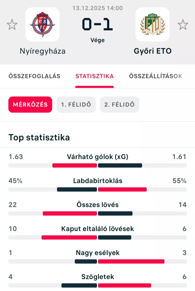 Sikeresen elcsalták az egyenlítő gólunkat, fordított helyzetben ezt megadták volna.