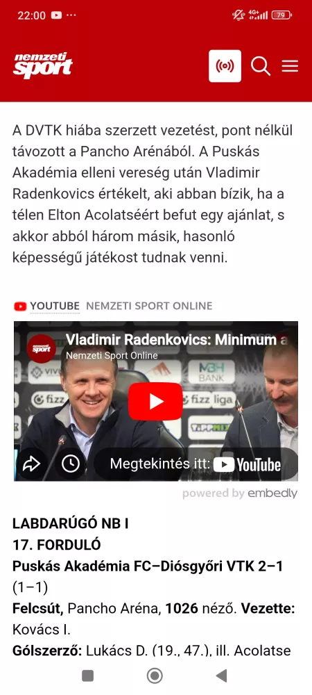 Most irják az nso n hogy Radenkovics abban bizik télen el tudják adni Acolatset es 3 masik hasonló szintü jatekost vesznek rajta...