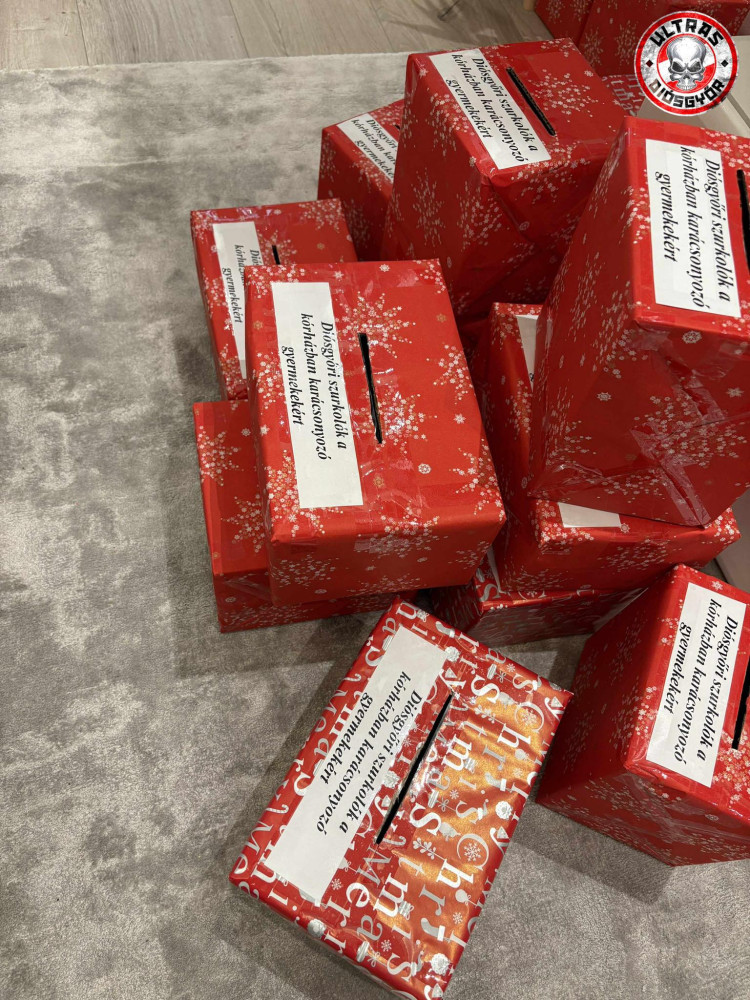 A Szervezett Szurkolói Csoportok megkezdték immár 12. karácsonyi gyűjtőakciójukat. A diósgyőri ultrák a GYEK betegeit ajándékozzák meg évről-évre.
