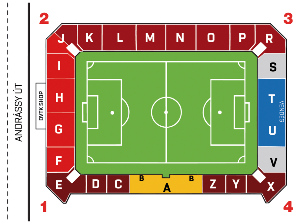 Bizonyos szektorokba (E, R, S, V, X, Y, Z) a DVTK nem árusít belépőjegyeket, csak abban az esetben, amennyiben - a biztonsági szempontokat is figyelembe véve - a többi szektor jegyfogyása indokoltá teszi.