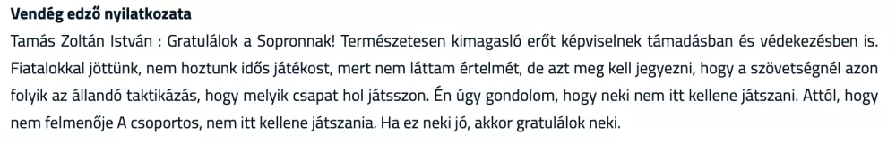 Én is gondoltam erre, de aztán elvetettem. A vezetőség is pont most vetette el, hogy nem engedték feljutni az U23-at. Egy külön egyesületet kellene alapítani és elindulni legalulról. Ez nagy macera és költség. Egyszerűbb és olcsóbb ide csábítani a legnagyobb tehetségeket. Nem kell belőlük egy csapatnyi, csak mondjuk 1 fő évente. Többet úgysem lehet beépíteni a nagycsapatba, de még talán ennyit sem. A Sopron sem tudja megtartani a tehetségeket, ha nem tud nekik versenyképes fizetést kínálni.