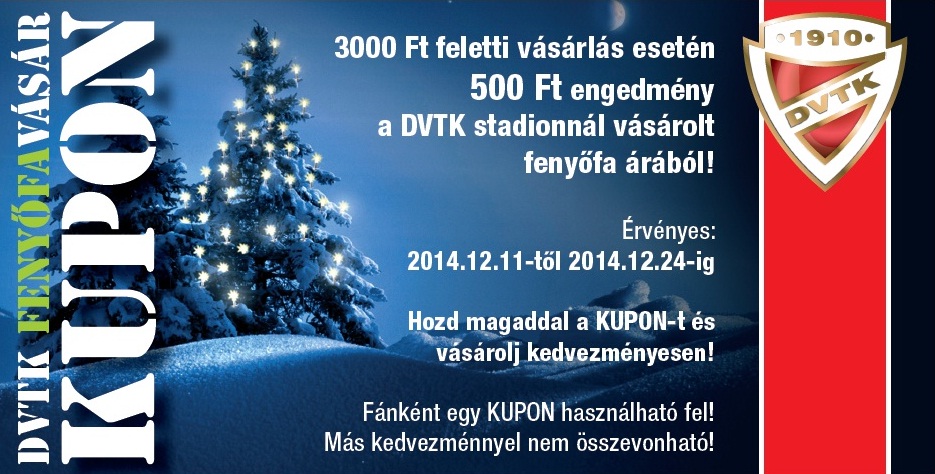 A Karácsonyi ünnepek közeledtével a DVTK Stadion Maratoni kapujánál immáron 10. alkalommal kerül megrendezésre fenyőfavásár.
