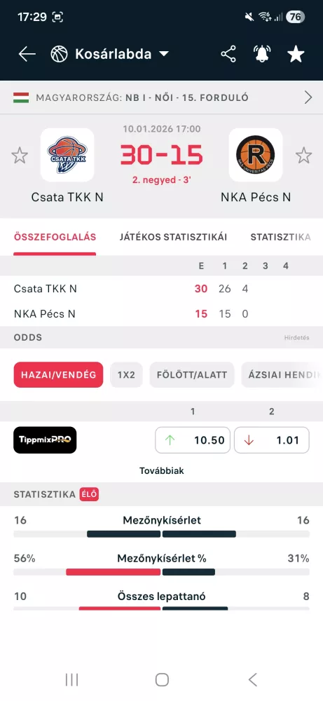 A mérkőzés részletes statisztikája ide kattintva érhető el.