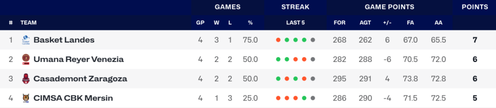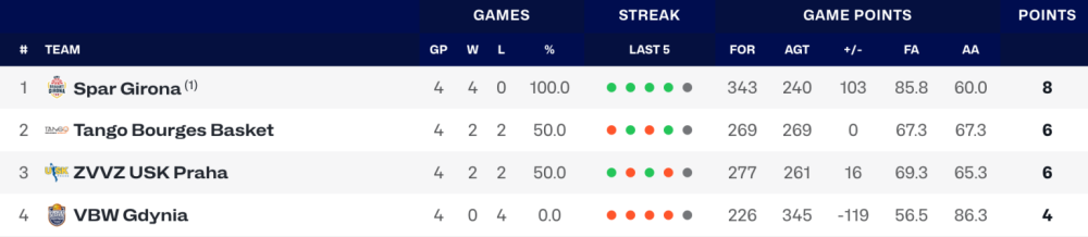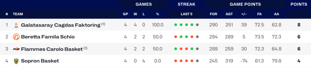 A wbasket.hu összeállításából megtudhatjuk, hogy a játékhetet követően a Juhász Dorkával felálló Galatasaray Cagdas Faktoring, a Fenerbahce Opet, a Spar Girona, a Flammes Carolo Basket és a Valencia Basket Club biztosította továbbjutását.