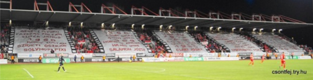 Meglehet, hogy másfél évtizede volt bemutatva a látvány, viszont üzenete a mai napig releváns, és valószínűleg még sokáig az marad. Néhány hónappal korábban, a Pápa elleni hazai bajnokin (2-0) hasonló konnotációja volt a DVTK koreográfiájának. Akkor egy 12-es számú mez, “Bűnöző” feliratú óriás-mez, illetve a 2008 óta létező Bajtársak csoport - amely az akkori hangulatfelelőst, Feledi Lászlót is köreiben tudhatta – nevével illusztrált szójátékot tartalmazó kiírás.
