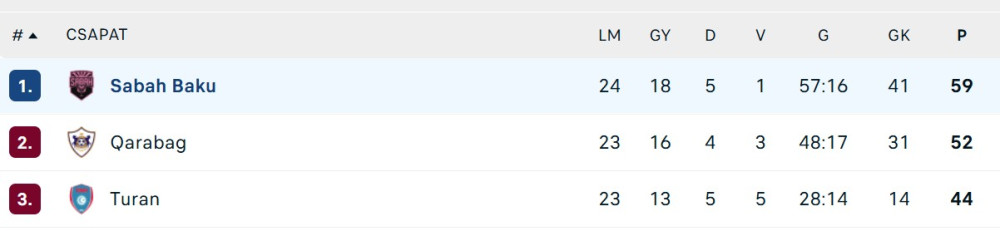 A Sabah immár 7 hét pont előnnyel vezeti a bajnokságot a Qarabag előtt.