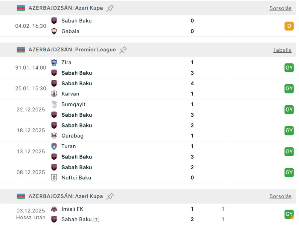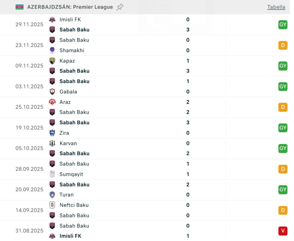 Horváth Csengerhez kapcsolódó hír, hogy az a Valdas Dambrauskas - aki Horváth invitálására érkezett Diósgyőrbe vezetőedzőnek és aki a sportigazgató menesztését követően távozott a DVTK kötelékéből - azeri csapatával, a Sabah Baku együttesével 25 meccs óta veretlen. A litván edző Sántha Gergely hatalmi harcának vált az áldozatává Diósgyőrben Horváth Csengerrel egyetemben. Új állomáshelyén a legutóbbi 22 bajnokin és 3 kupameccsen sem talált legyőzőre. A bakui együttes utoljára 2025 augusztusában szenvedett vereséget.