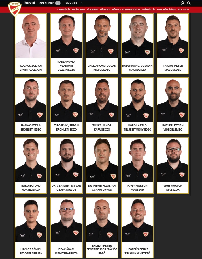 Ezzel immár 19-re nőtt a labdarúgó csapat stábjának létszáma. Vladimir Radenkovic mellett 3 másodedző, 2 erőnléti edző, 1 kapusedző, 1 teljesítményedző, 1 videoelemző, 1 adatelemző, 2 csapatorvos, 2 masszőr, 2 fizioterapeuta, 1 sportrehabilitációs edző és 1 technikai vezető dolgozik a csapat sikeréért.
